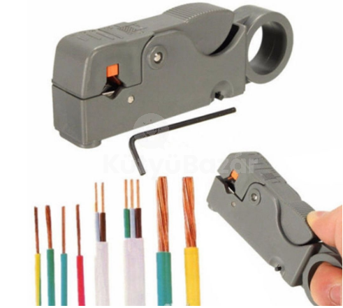 Használata igen egyszerű. Állítsd be a megfelelő vágási mélységet, helyezd a kábelt a vágó felülethez, nyomd a kést a kábelhez, majd forgasd körbe az óramutató járásának megegyező irányba, és húzd le a levágott kábel burkolatot.