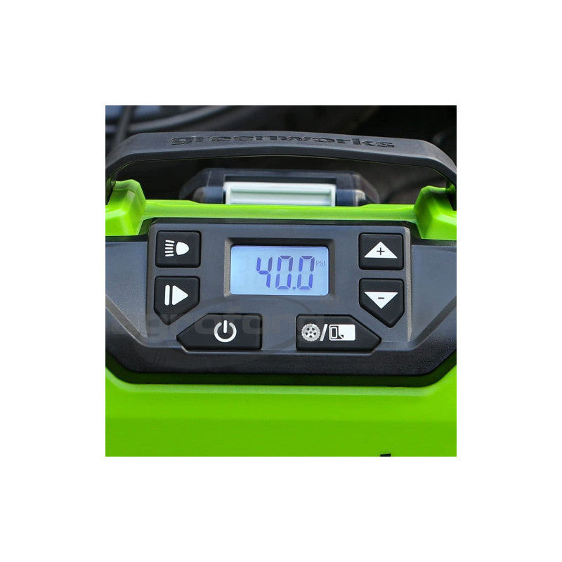 • A GreenWorks hordozható gumiabroncs-felfújóval nem kell aggódnia a túlfújás miatt.