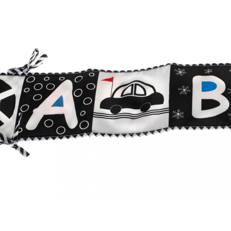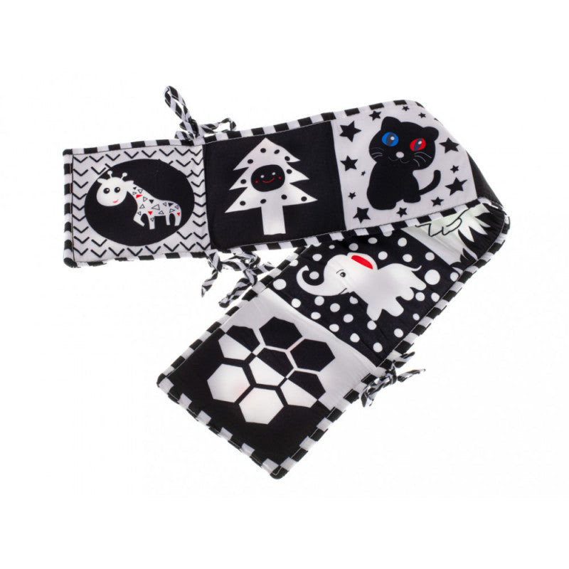 A babakönyv nem csak könyvként funkcionál hanem kiságyvédőnek is használható. A kontrasztos színek és a zizegő oldalak lekötik gyermeked figyelmét és ösztönzi a látását és a tapintását.