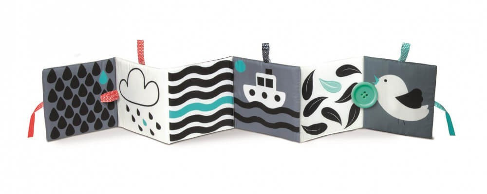 Ebben a kontrasztos bébikönyvben minden megtalálható, mint például tükör, csipogó, zizegő oldalak, vagy különféle felületek és anyagok. Gyermeked odáig lesz érte, hogy babrálja majd! A játék nem csak lefoglalja, de fejleszti is a babák látását. A tartózsinór segítségével akár a kiságyra, vagy a babakocsira is akasztható, a bébikönyv pedig rögzítőgombbal zárható.