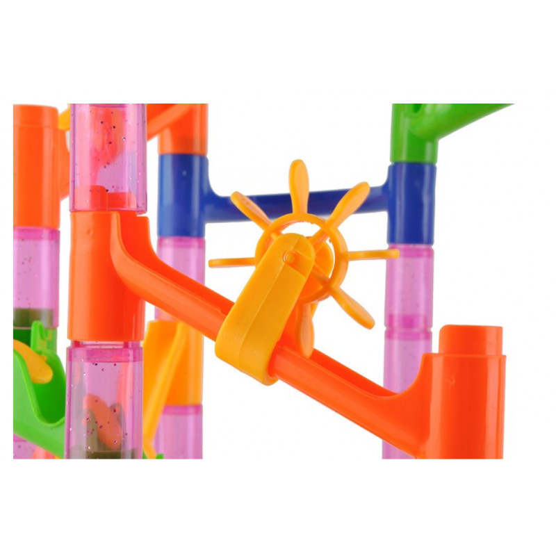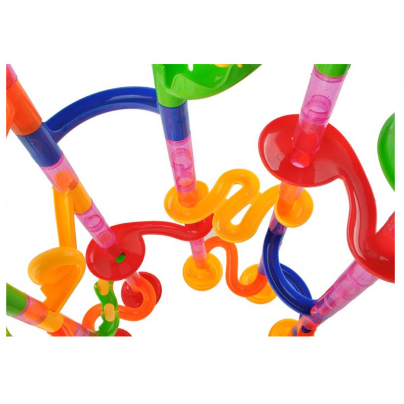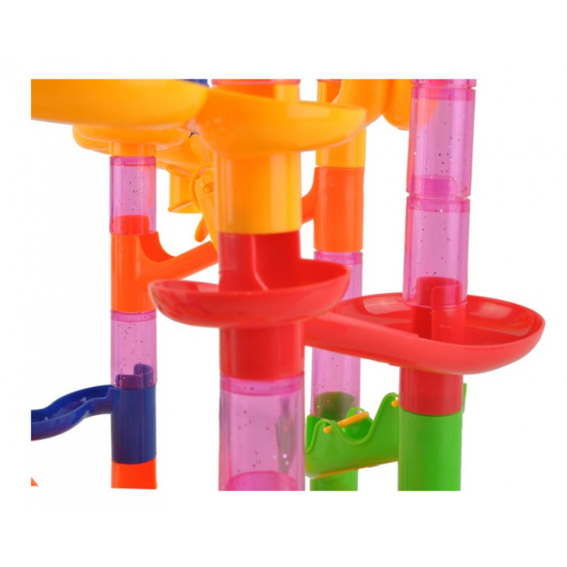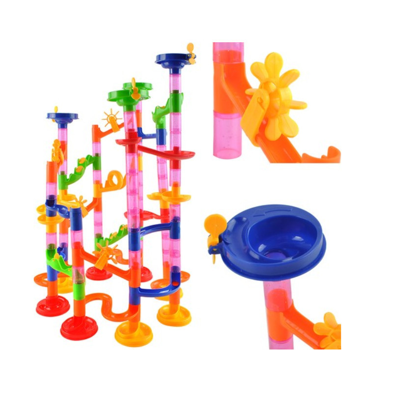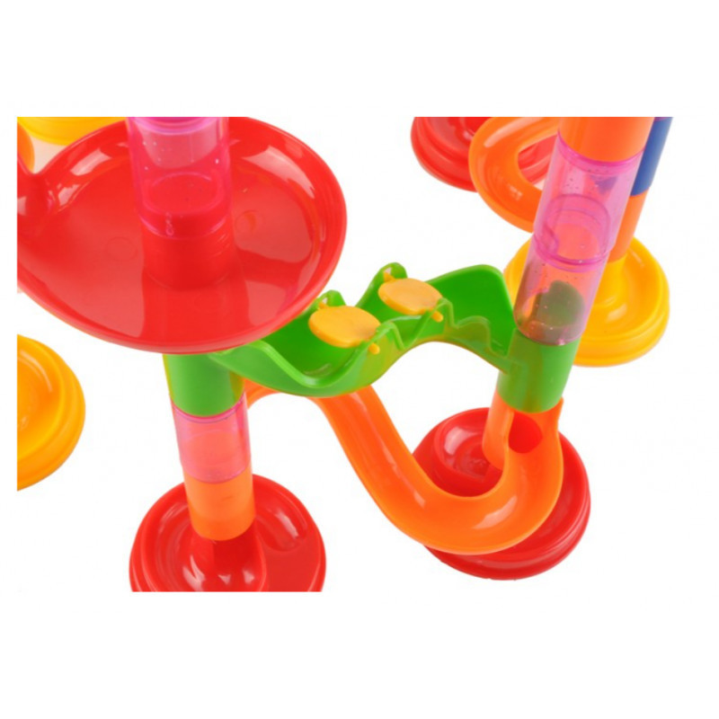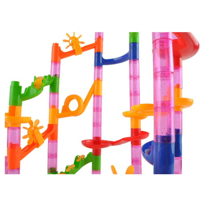 A kerek, piros üveggolyók nagyon tetszetősnek tűnnek, mikor a kijelölt pályán gördülnek. Olyan a pálya elrendezésének képessége, amelyen a golyók minden irányában mozognak. Minden elem könnyen összekapcsolható és könnyen állítható, ami lehetővé teszi a gyors változtatásokat a pálya elrendezésében és így garantálja az izgalmas szórakozást.