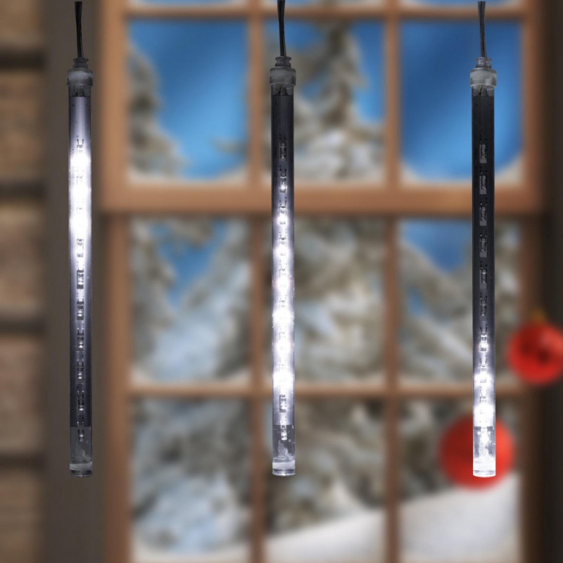 A dekoráció érdekessége, hogy a világítás nem más, mint a jégcsap olvadását imitáló fényjáték, amely a 20 cm-es jégcsapon jelenik meg. Ezzel a termékkel valódi jégcsapokat varázsolhat otthona ablakára vagy akár a teraszra. A hidegfehér fények kellemes, fénypontokat adva a téli tájképnek.