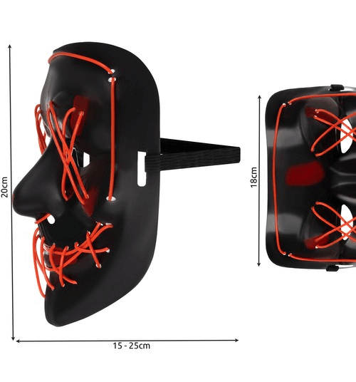 Eszedbe se jusson Halloweeni partira vagy rockkoncertre menni a hozzá illő maszk nélkül. A mi javaslatunk egy eredeti és egyedi maszk, amely lehetővé teszi, hogy különböző karaktereket személyesíthess meg, és meglepd a buli minden résztvevőjét. Ráadásul a maszk kényelmesen viselhető. Rendkívüli könnyedség és stabilitás jellemzi! Az elemekkel ellátott vezérlő gyorscsatlakozóval csatlakoztatható, a kábel hossza 1 m. Az elemes doboz, zsebbe tehető vagy övre csíptethető.