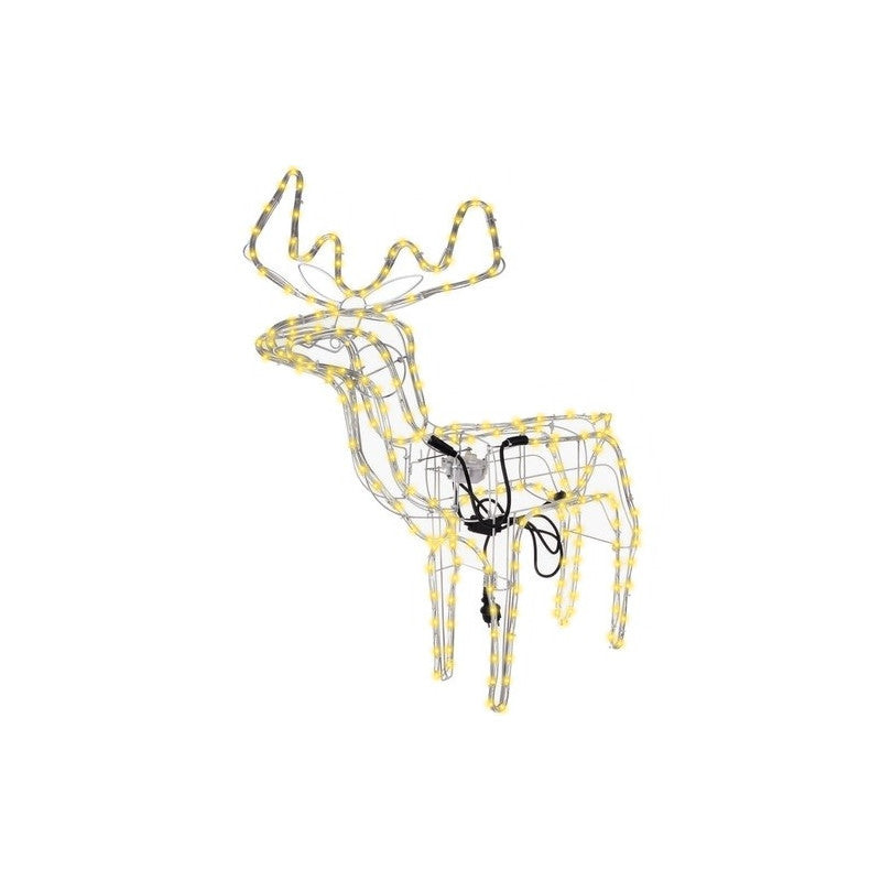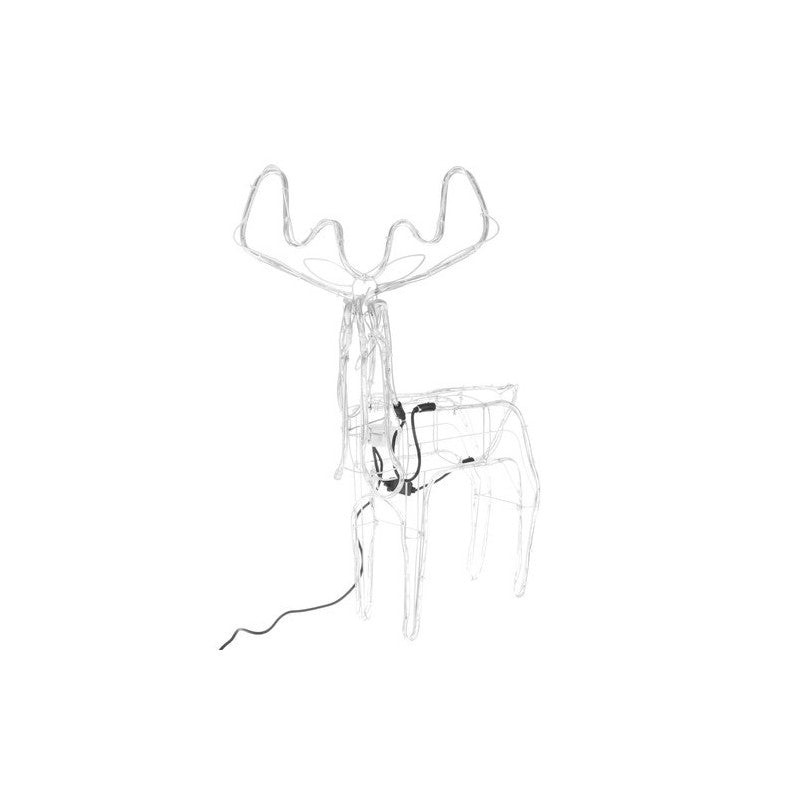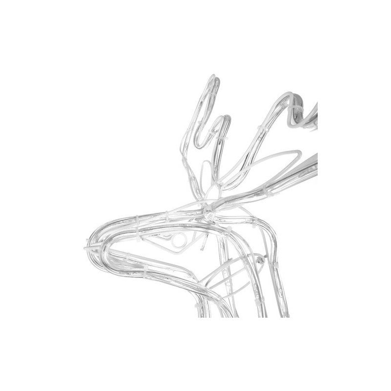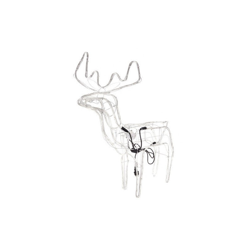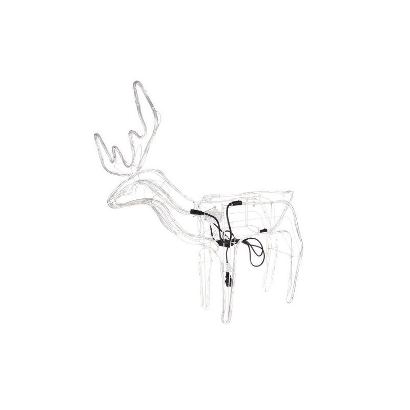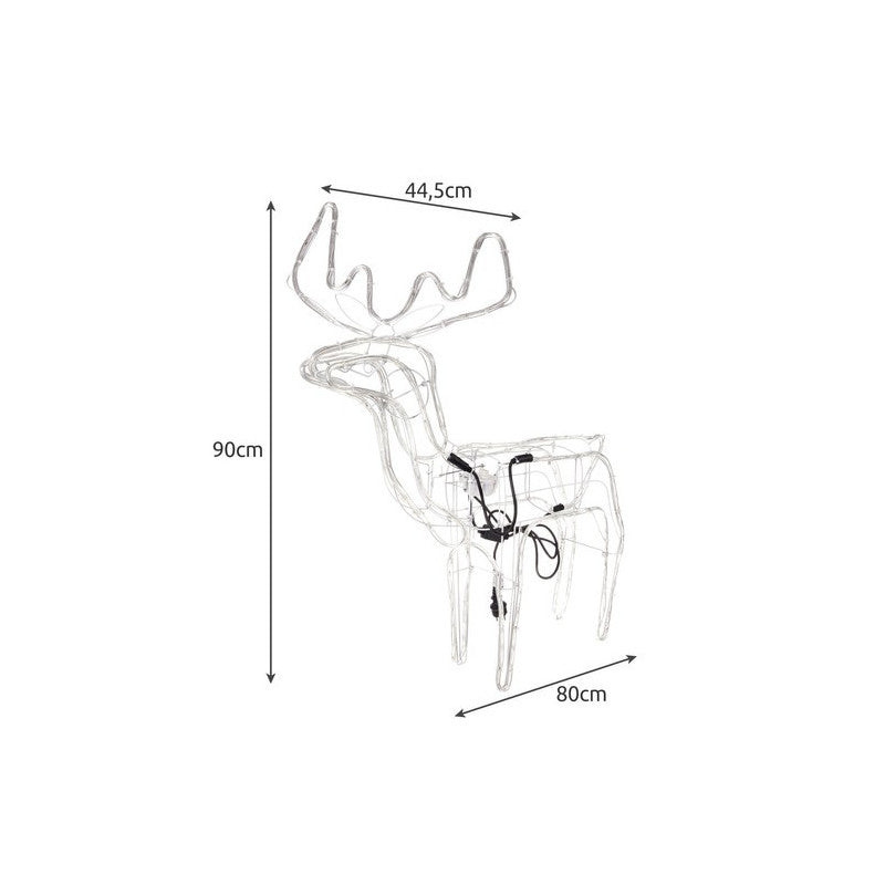 A rénszarvas egy fémkeretre épült, fehér festékkel bevonva. Világító LED-ekkel van felszerelve, amelyek egy átlátszó csőben helyezkednek el, így bekapcsolva gyönyörű fényhatást kelt. Ez a 3D LED figura igazi Télapó-birodalmat varázsol otthonodba. Ha van elég helyed, dobd fel vele a kerted vagy a házad dekorációját!