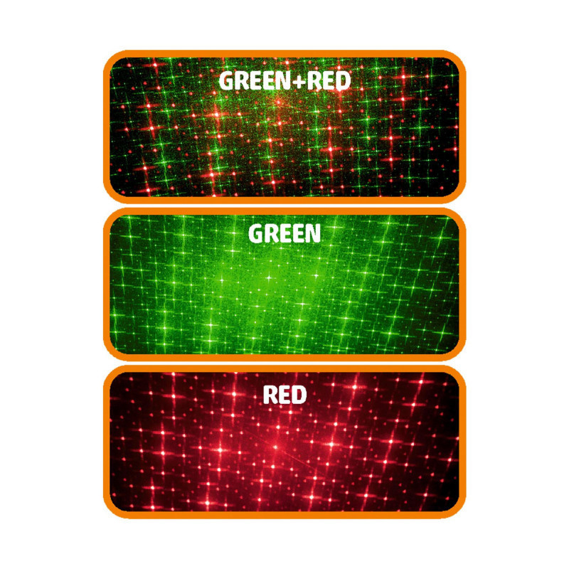 9-féle lézerprogrammal, piros és zöld lézerfénnyel.