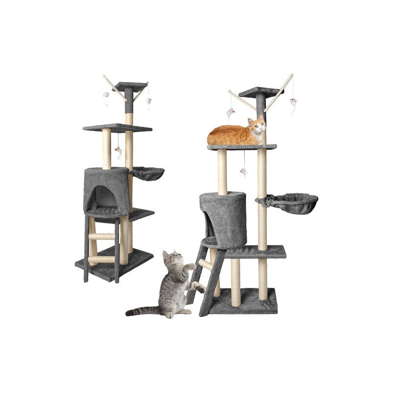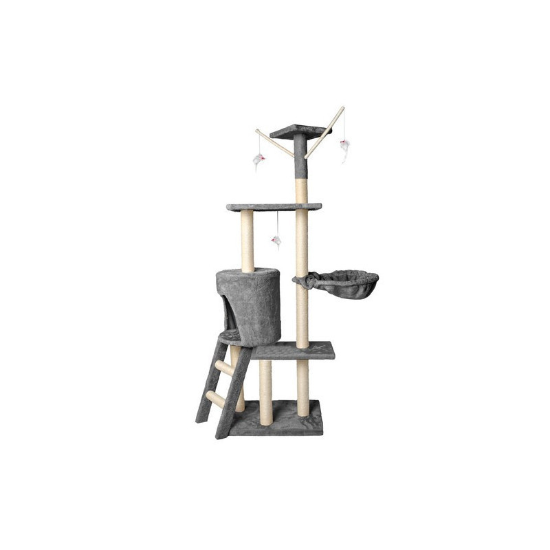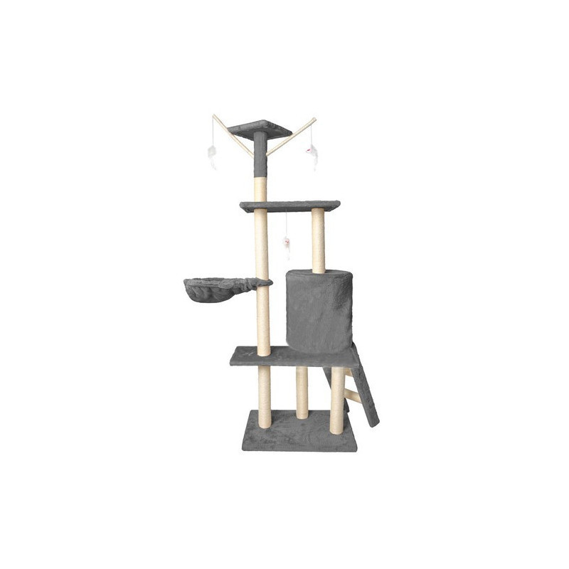 Macskafa 138 cm, szürke, karmolódeszka, alvóhely, játékok