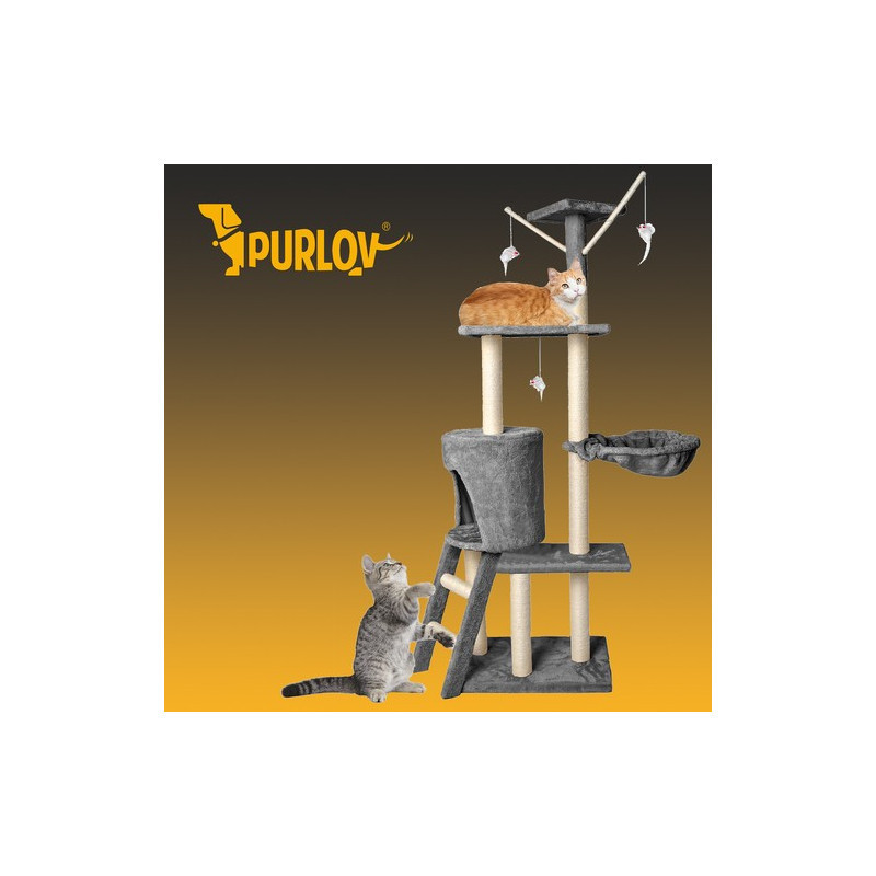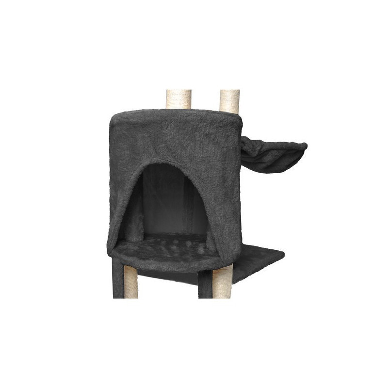 Ez a 138 cm magas macskafa öt szintre van osztva, amelyeken cicád szabadon mozoghat, lustálkodhat, leselkedhet és játszhat a többi cicával. A széles alap és a masszív szerkezet biztosítja a stabilitást. A fának van egy meghitt kis háza, amelyet két lépcsőn keresztül lehet megközelíteni – tökéletes hely a pihenésre. Három bolyhos egér is található a fán, amelyek felkeltik cicád kíváncsiságát és játékra ösztönzik.