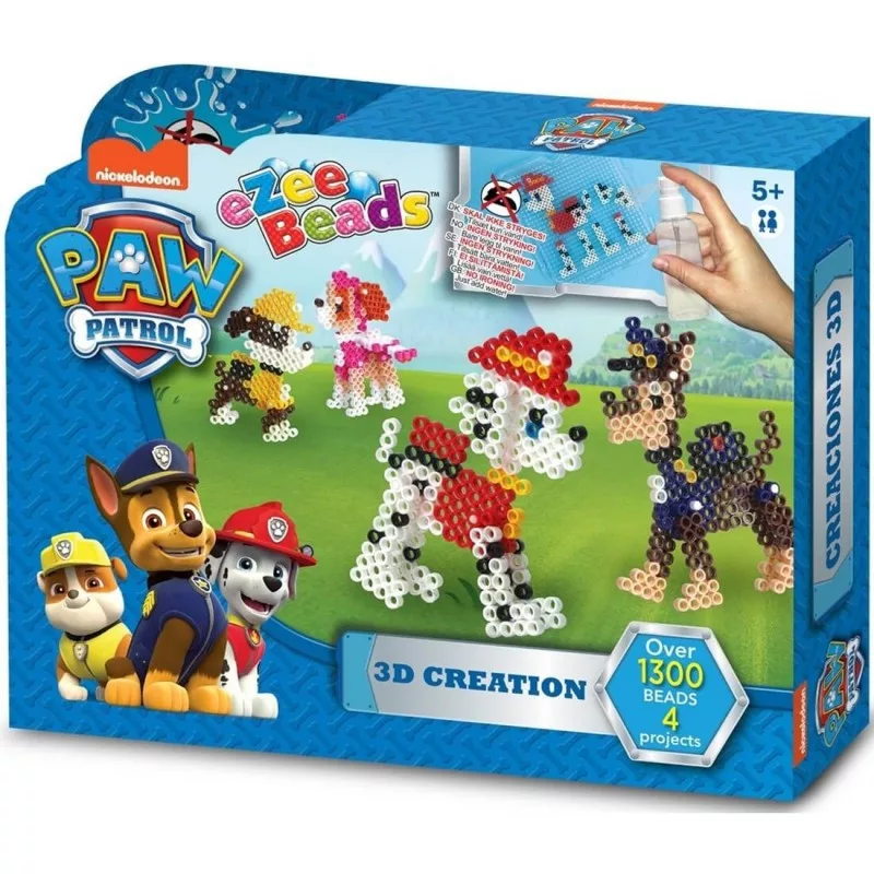 Ezzel a gyöngykirakóval a gyermekek könnyedén készíthetnek színes gyöngy figurákat a Mancs Őrjárat kutyák hőseivel. A készlet 1300 darab gyöngyöt és négy különböző mintát tartalmaz. A kirakott minták 3D –s hatást keltenek, így a gyermekeket még jobban lefogják nyűgözni. A gyöngyök egybeállításához nincs szükséged vasalóra, elég őket vízzel lepermetezni, majd azok összeolvadnak. Ennek köszönhetően az elkészítése teljesen biztonságos.