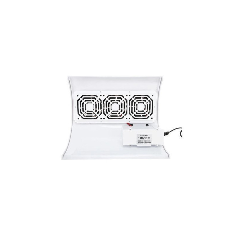 A készülék 3 erős ventilátorral van felszerelve, amelyek nagy részét felszívják a körömport. A készlet két tasakkal érkezik, amelyeket a ventilátorokhoz lehet csatlakoztatni.