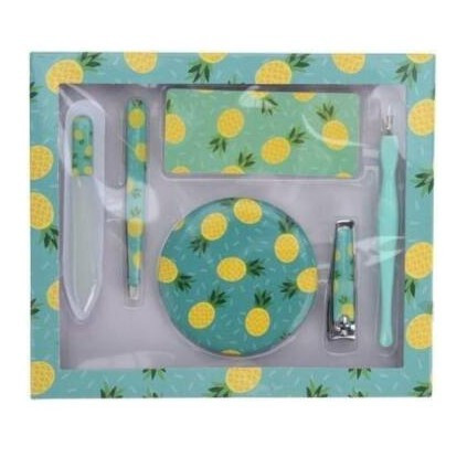 Az üde és vidám ananász mintás dizájn rögtön jó kedvre fog deríteni! A szett 6 db körömápolási eszközt tartalmaz, amivel ápolttá és széppé teheted körmeidet. Tartalmaz többek között körömreszelőt, körömcsipeszt és bőrfeltoló-kaparó eszközt is. A segítségükkel gyorsan és egyszerűen újíthatod meg körmeidet!