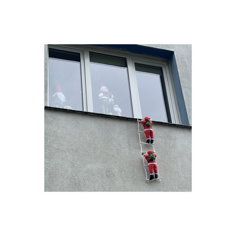 Képzeld el, ahogy két Mikulás mászik fel egy létrán, mintha csak az ablakodon kopogtatnának ma este! Ez a dekoráció garantáltan mosolyt csal mindenki arcára.