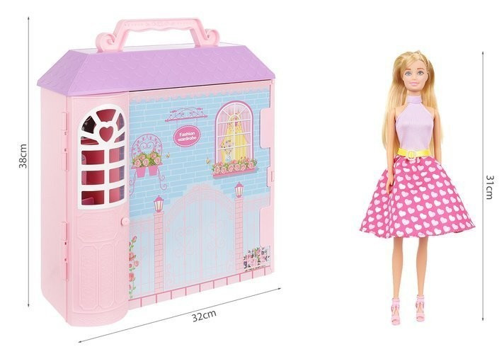 Öltözőszoba ruhákkal és babával gyerekeknek