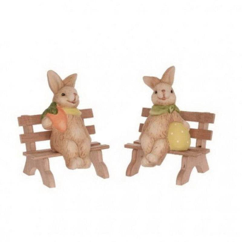 Ha szeretnél egy vidám és aranyos dekorációt otthonodba húsvétra, akkor a padon ülő kerámia nyuszi tökéletes választás.