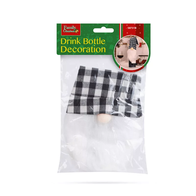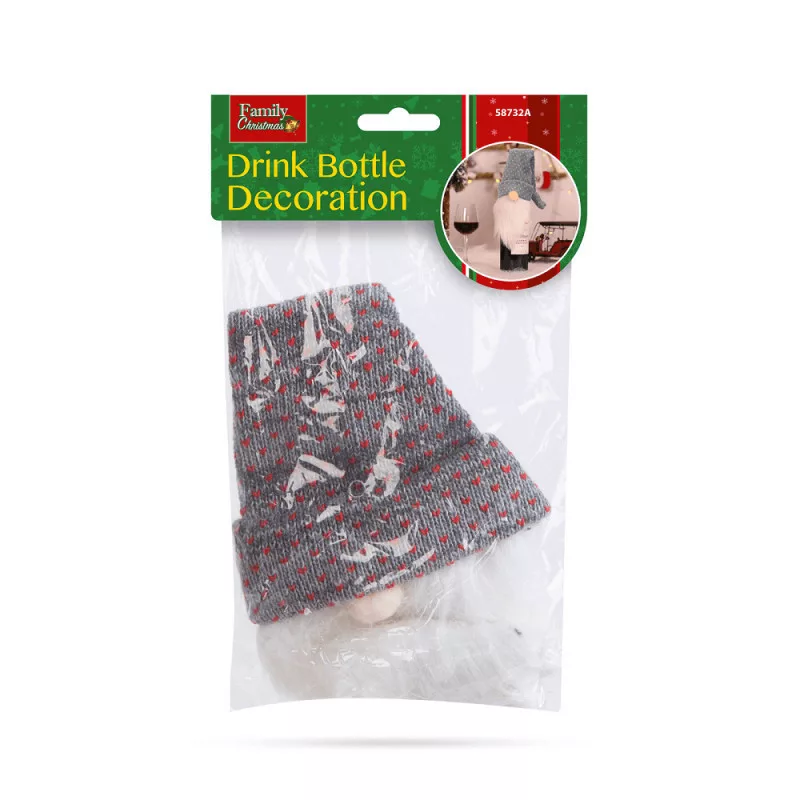 Karácsonyi ajándéknak egy pezsgő, boros, vagy egyéb üveges italt szeretnél szánni szerettednek? Akkor ez az aranyos manó dísz kiváló „ruhája” lesz a meglepetésnek. A termék puha, kellemes tapintású poliészterből készült, amely kinézetével garantáltan meghozza az ünnepi hangulatot bárkinek. 4 különböző sapkájú manóból tudsz választani: Kockás Piros, Kockás Szürke, 3D-s Piros és 3D-s Szürke mintázatú satyakkal ellátott figurák állnak rendelkezésre.
