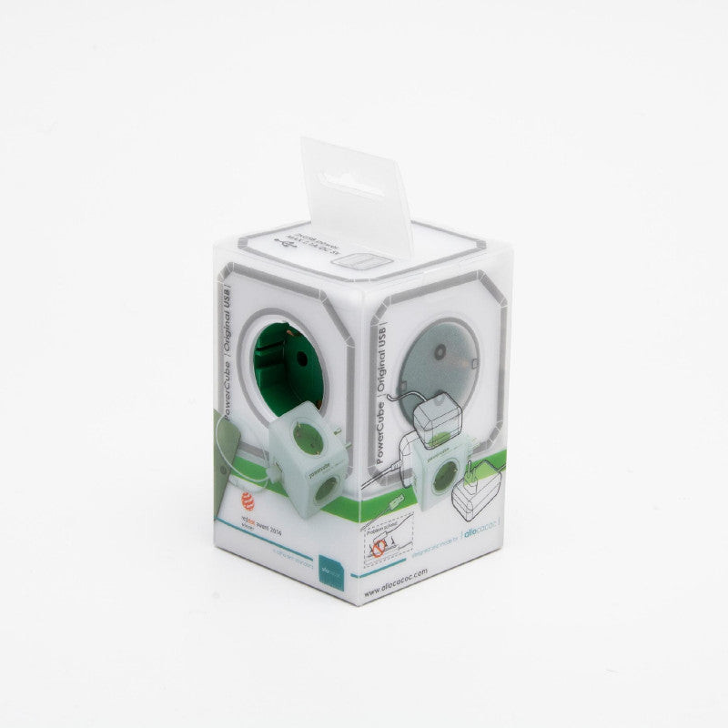PowerCube Original USB 1202GN/DEOUPC, 4 földelt aljzat gyermekvédelemmel, 2 USB aljzat, max. 3680 W, USB max. 2,1 A