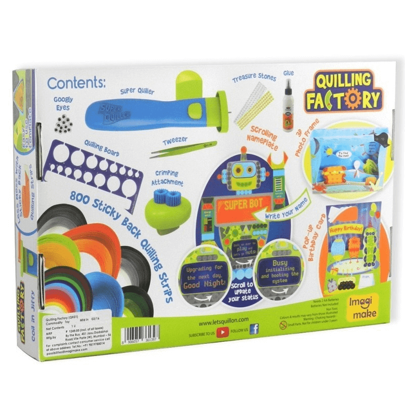 Az egyszerű és lenyűgöző kézműves készlet a Super Quiller Worlds első automatizált multifunkciós quilling szerszámát használja, a mellékletet krimpelő buddy-val, quilling táblával és csipesszel, 800 csíkkal és 3 projektcsomaggal.
