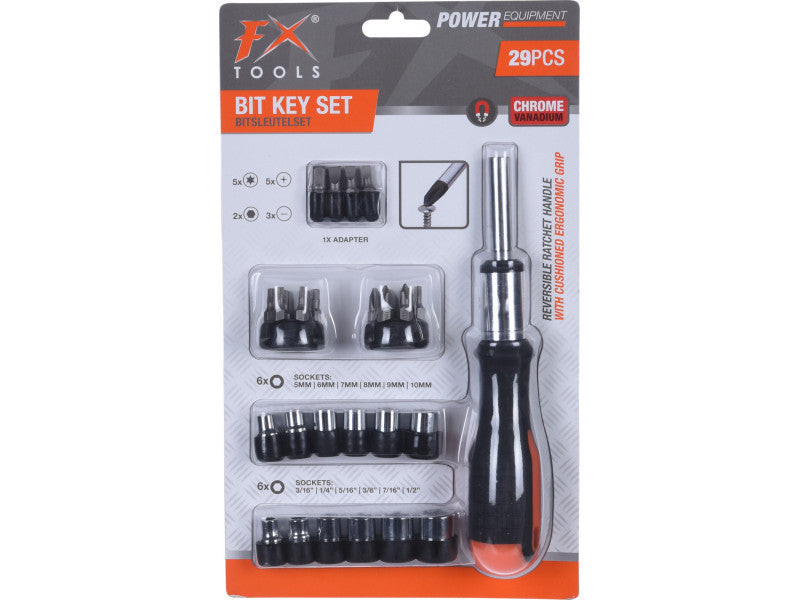 Az 29 darabos racsnis csavarhúzó készlet kényelmes és sokoldalú szerszámként használható. A készlet tartalmaz egy racsnis csavarhúzót és 28 darab különböző méretű és típusú csavarhúzóhegyet. A csavarhúzóhegyek kiváló minőségű acél készültek és a csavarhúzó mágneses végének köszönhetően nem fog kiesni egyik csavarhúzóhegy sem.