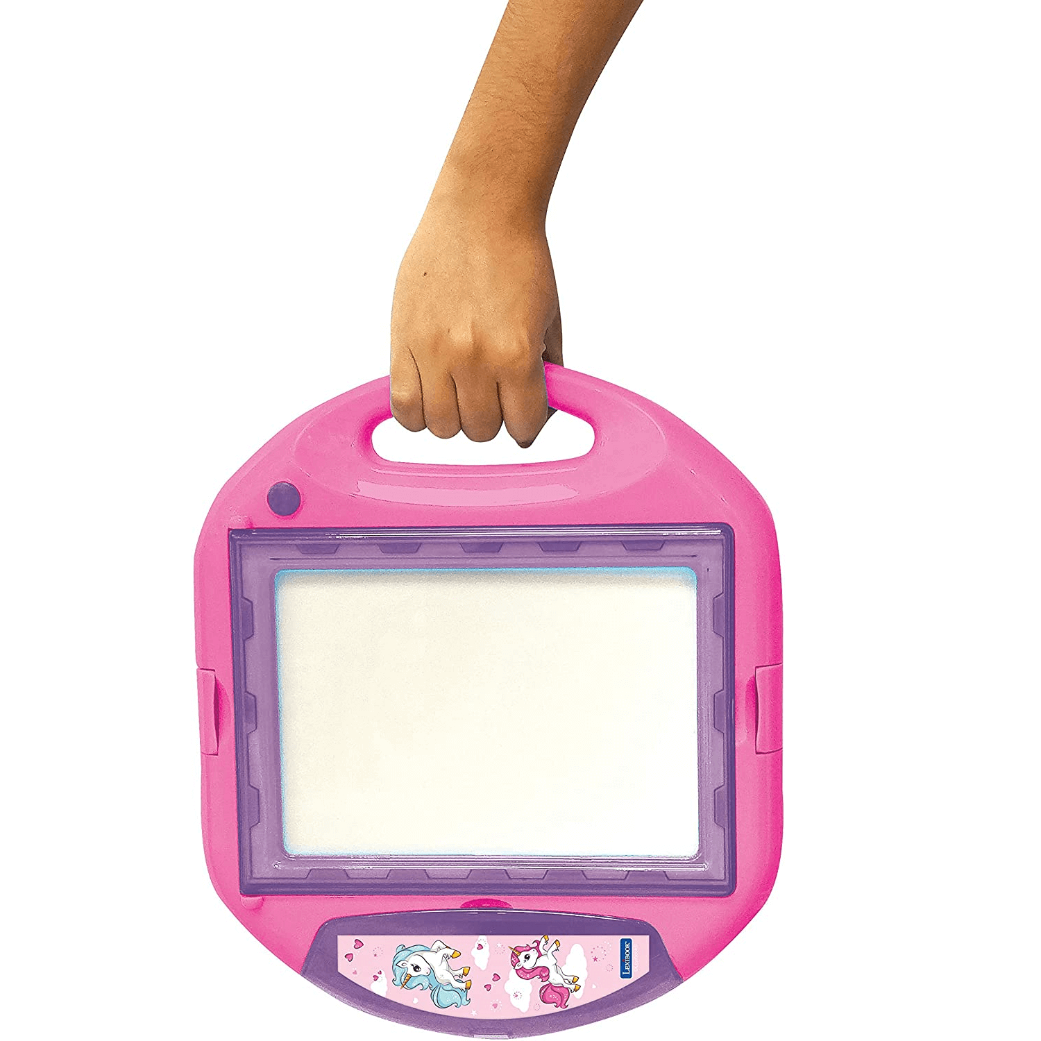 Ezen a rajztáblán teljes mértékben szárnyalhat a képzeleted, csakis a fantáziád szabhat határt. Egy átlátszó panelből áll, amin bármit rajzolhatsz, vagy ha úgy szeretnéd, használhatod a megadott 10 sablon vagy 4 pecsét egyikét. A csomagban még található 1 toll és 10 papír. Ha kész a remekmű, egyszerűen törölhető a képernyő, és már kezdődhet is elölről a móka. Működését 3 db AAA-s elem biztosítja ami nem tartalma a csomagnak.
