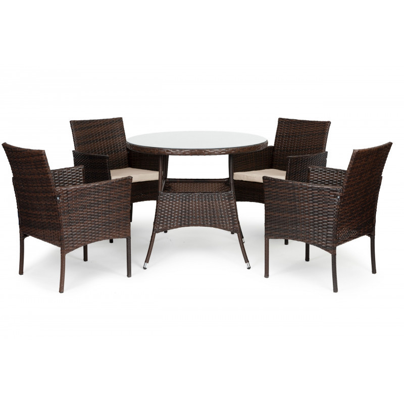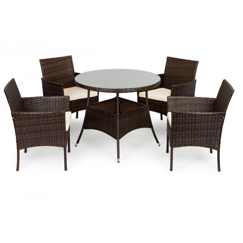 Rattan kerti bútor szett 4 székkel és üveglappal ellátott asztallal