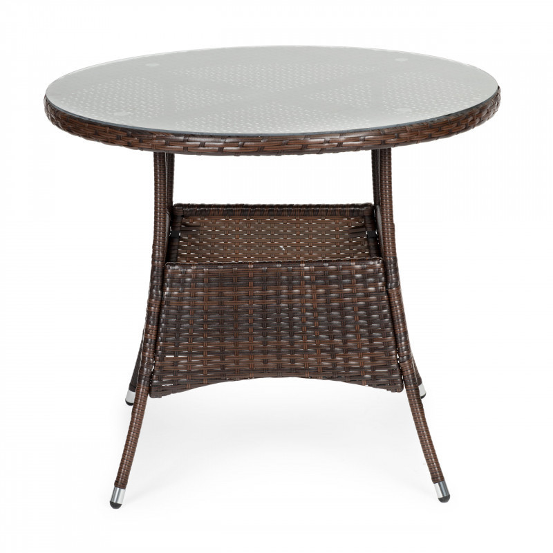 Egy nagy, funkcionális asztal remek kiegészítője és elválaszthatatlan eleme minden kerti garnitúrának. Az asztal edzett üvegből készült teteje, amely tartóssá és biztonságossá teszi a használatát. A lábai speciális lábakkal vannak befejezve, amelyek megakadályozzák a karcolásokat mozgatáskor. Az üveg felületnek köszönhetően az asztal teteje könnyen tisztán tartható, és az átmérője (90 cm) kényelmes helyet biztosít az étkezéshez, ételek, italok szolgáltatásához vagy a nyári barbecuen való pihenéshez család és barátok társaságában.