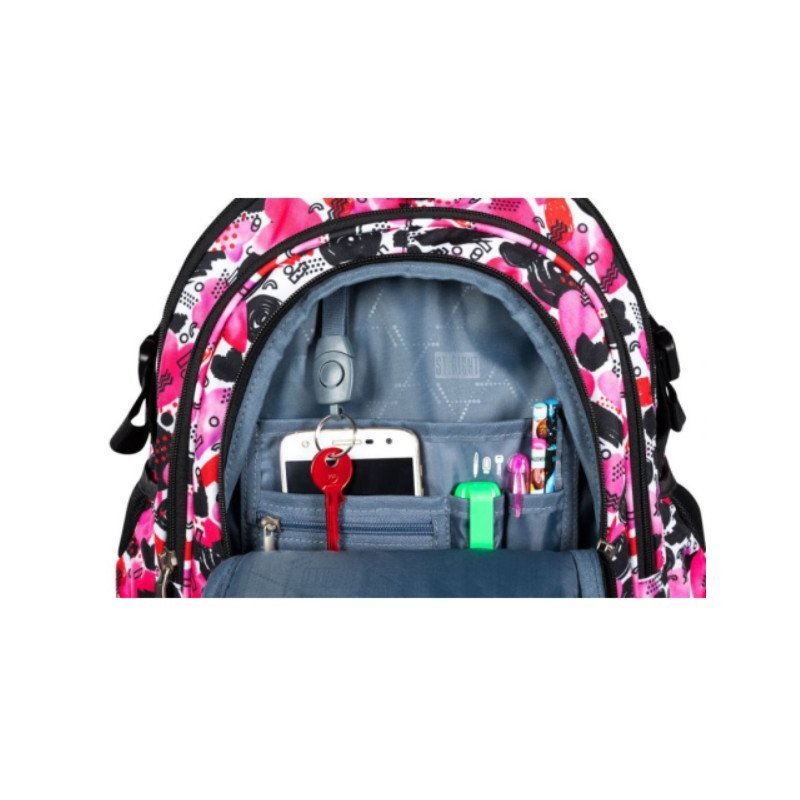 Az iskolatáska ergonomikus és állítható vállpántjainak köszönhetően kényelmes a viselete. Vízálló külső anyaga van a biztonságról pedig a fényvisszaverő elemek gondoskodnak. A nagy tárolókapacitásának köszönhetően könnyedén elférnek benne az iskolai felszerelések. Kulcstartó és fejhallgató kimenet is található benne.
