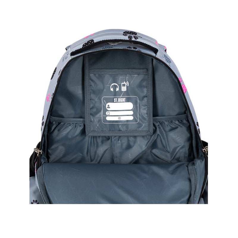 A St.Right Paws négy rekeszes iskolatáska tökéletes választás a gyermekének az iskolakezdéshez, egyedi megjelenését pedig imádni fogja.