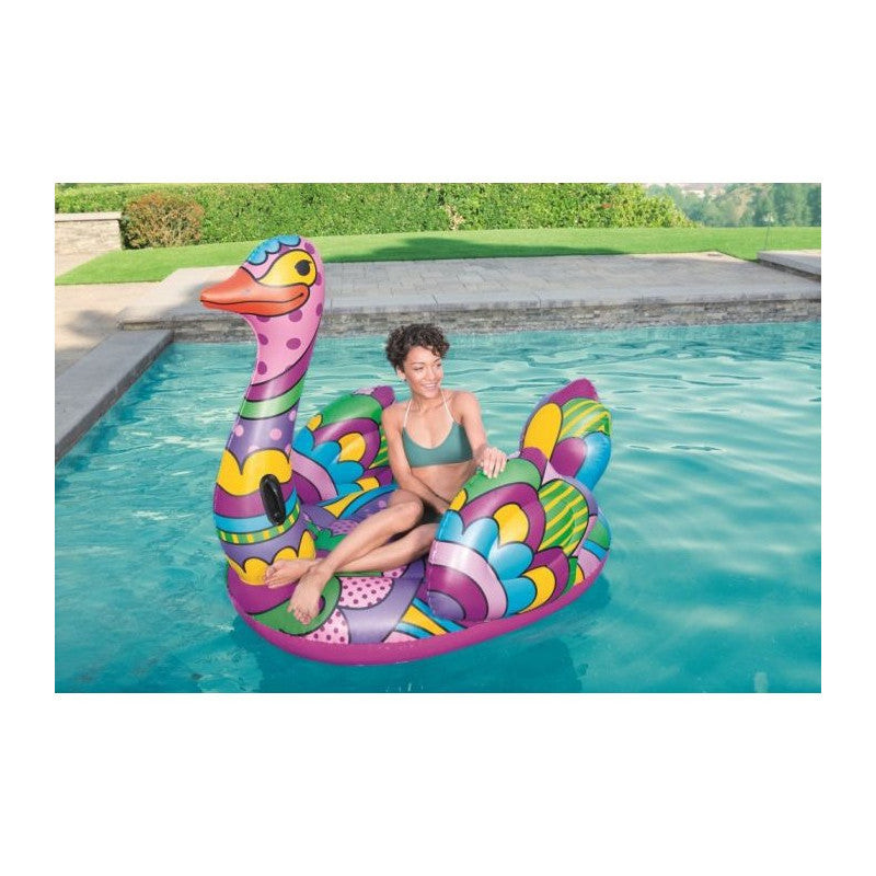 Bemutatjuk az Strucc úszógumit, a tökéletes strandjátékot a nagyobb hullámokhoz! Ez a 190 cm hosszú PVC strandjáték biztonsági szeleppel rendelkezik, amely megakadályozza a levegő kiszökését, valamint fogantyúval és strucc nyakkal a stabilitás fokozása érdekében. Felfújva 190 x 166 cm-es méretével órákig élvezheti a napsütéses szórakozást ezzel az egyedi és tartós strandjátékkal. Egyedi kialakításával ez az úszógumi három kulcsfontosságú előnyt kínál, amelyek miatt minden család számára kötelező darab: kényelmes, biztonságos és szórakoztató!