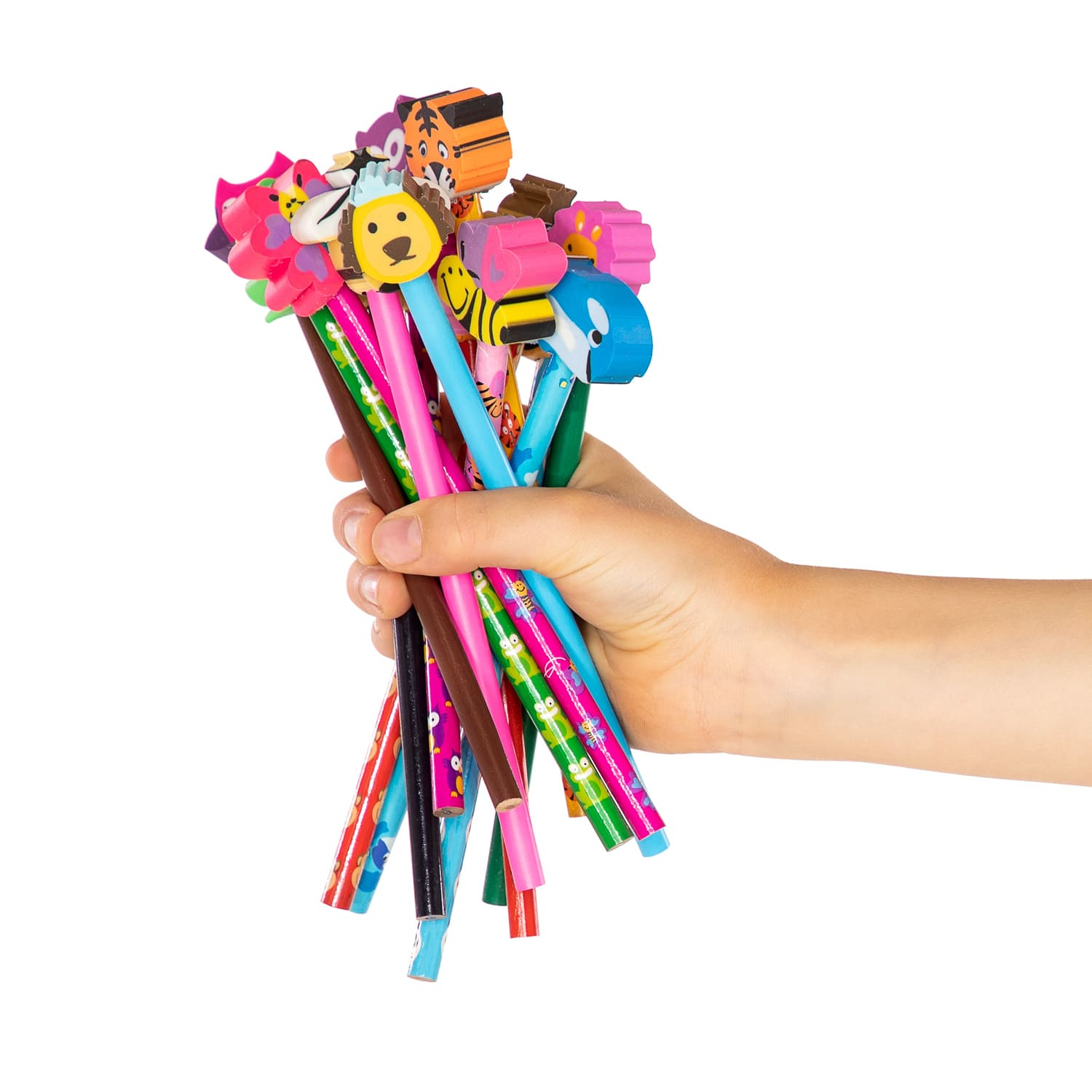 A készletben 20 db ceruza található, melyeknek tetején különböző állatmintás radír van. A kicsik így egyszerre tudják gyakorolni a színezést és megtanulhatják az állatok nevét és kinézetét is.