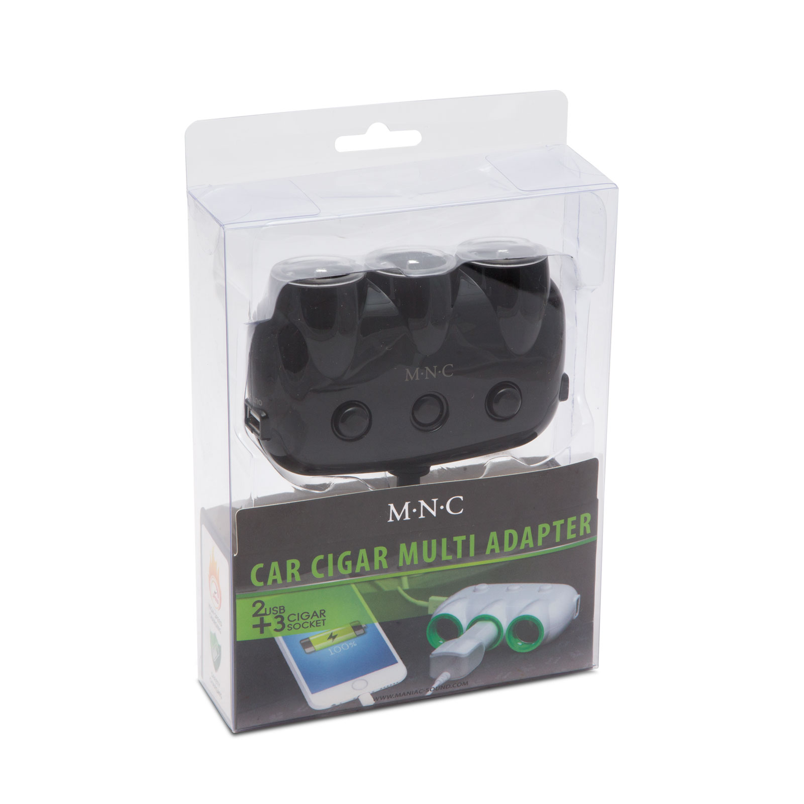 Szivargyújtó aljzatba csatlakoztatható 3-as elosztó + 2 x USB csatlakozás. Ennek az eszköznek a segítségével nem kell lemondani semmilyen eszköz energiaellátásáról. Lehetőséget biztosít egyidejűleg több eszköz üzemeltetésére. Kérjük, figyeljen oda a maximális terhelhetőségre! Ha nem használja az eszközt, húzza ki a szivargyújtó aljzatból!