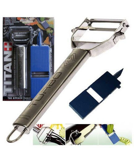 A Titán Multifunkciós szeletelő és hámozó egy olyan innovatív konyhai eszköz, amihez külön szeletelő csatlakozó is jár, így a legtöbb konyhai szeletelések során csak ezt az egyetlen eszközt kell alkalmaznod.