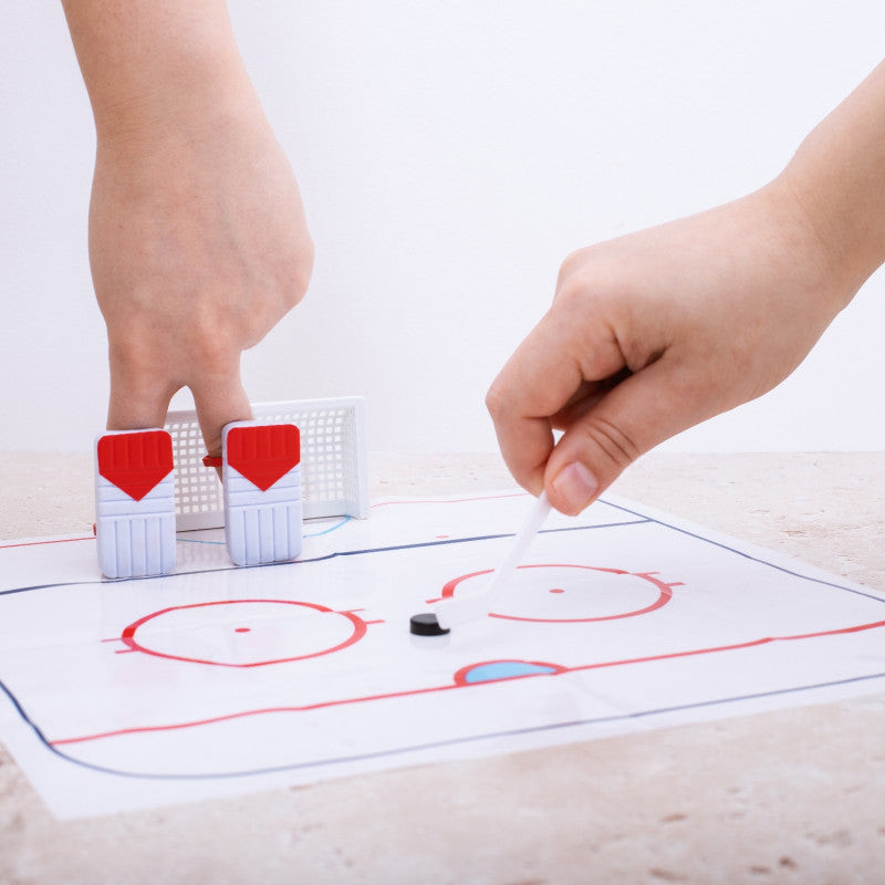 Bemutatkozik a Ujj játék - Jégkorong, egy szórakoztató és izgalmas módja annak, hogy élvezd a jégkorong minden izgalmát anélkül, hogy valaha is ki kellene mozdulnod otthonról! A könnyen kezelhető szőnyeggel, hokiütővel, koronggal és két ujjpárnával ellátott játék lehetővé teszi, hogy lökdösődj, üss, és soha ne add fel, miközben barátaiddal csatázol. Készülj fel az órákig tartó intenzív versenyre, miközben kihívjátok egymást, hogy ti legyetek a végső jégkorongbajnokok!