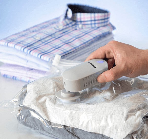 A 2 az 1-ben újratölthető vákuumszivattyú és pumpa kompakt és könnyű, többfunkciós kialakítással, amely alig foglal helyet, így bárhova könnyen elvihető és használható. Vákuumcsomagoláshoz is alkalmas, kiszívja a levegőt a ruhák, élelmiszerek stb. szelepes zsákjaiból. Pumpaként is működhet, sport- vagy vízi tárgyakhoz (pl. lábdák, úszók, stb.). Folyamatosan maximum 10 percig működik, majd automatikusan kikapcsol.