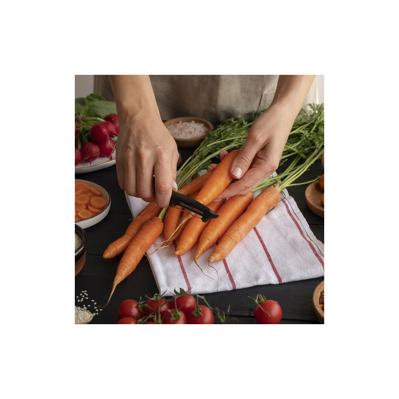 Ez a hámozó nemcsak egy egyszerű konyhai eszköz, hanem a legjobb barátod lesz a konyhában. Az ergonomikus, kézbe simuló markolatnak köszönhetően a hámozás gyerekjáték lesz. A két rozsdamentes acél penge pedig villámgyorsan és hatékonyan távolítja el a zöldségek és gyümölcsök héját.