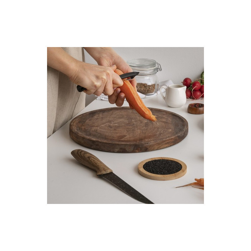 A hámozó különleges kialakítású vége lehetővé teszi, hogy a nem kívánt részeket is könnyedén eltávolítsd. És amikor végeztél, az "szem" alakú akasztóval egyszerűen felakaszthatod a hámozót, így mindig kéznél lesz.