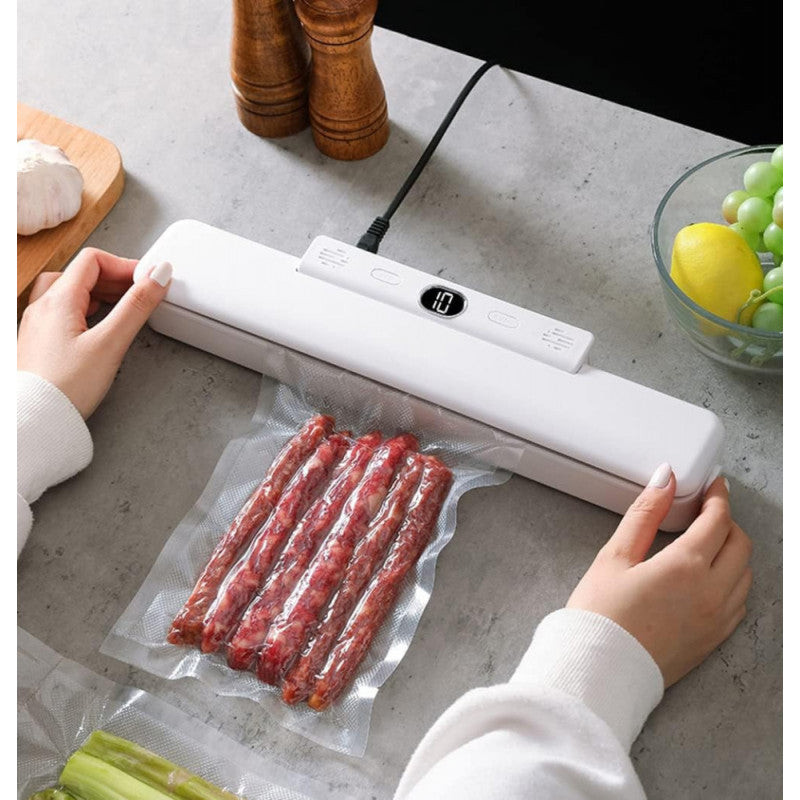 Ételek frissen tartása: A vákuumzárással az élelmiszerek frissességmegőrzési ideje akár 8-szor hosszabb lehet, mint a hagyományos módszerekkel. Ez a vákuumozó gép nemcsak az élelmiszertárolási problémákat oldja meg, hanem időt és pénzt is megtakarít, egyszerűbbé és gazdaságosabbá téve a főzést és az ételkészítést. Nélkülözhetetlen eszköz minden otthoni konyhában.