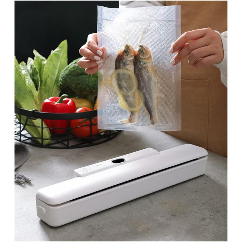 Kompakt kialakítás: Ez a vákuumcsomagoló gép 10 darab zárózsákkal, felhasználóbarát. Az összmérete és könnyű kialakítása könnyű tárolást és mozgatást tesz lehetővé, értékes helyet takarít meg a konyhában a tárolás során, csökkenti az élelmiszer-számlát és soha többé nem pazarolja el a maradékokat. Alkalmas vákuumozó táskák és tekercsek használatára.