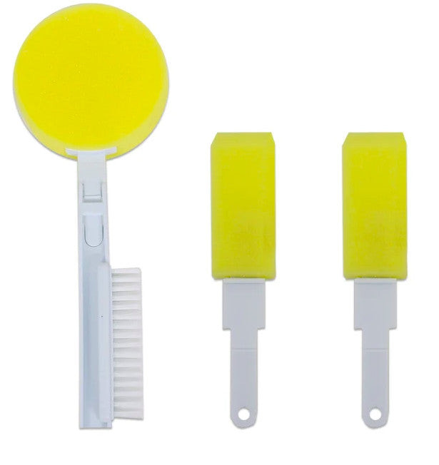 Három szivacsot (egy kerek, két szögletes) és egy beépített kefét tartalmaz, valamint egy hátkeféhez való kerek tartozékot.