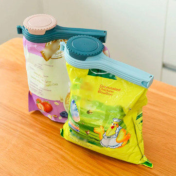 A zacskó záró fedél könnyen felilleszthető bármilyen műanyag vagy papírzacskóra, rögzítsd és utána zárd le vagy nyisd fel a kupakot, hogy tegyél magadnak egy kis tállal a kedvenc élelmiszeredből.