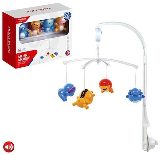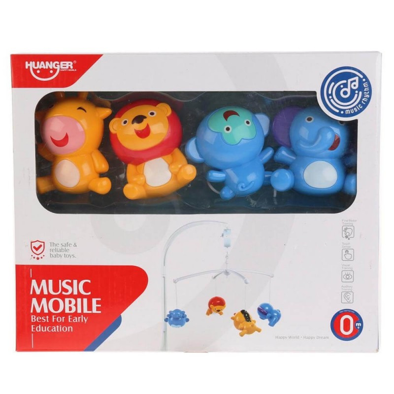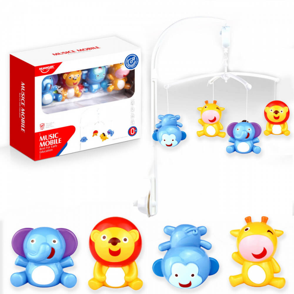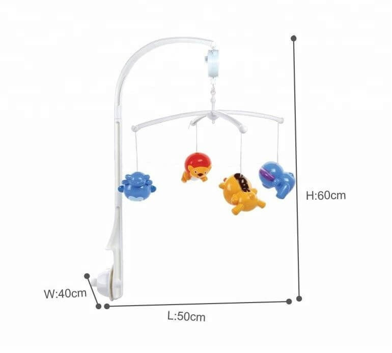 A gyermekek szeretik a különböző állatokat, és a zenés játékokat, így ez a körforgó tökéletes választás babaágyak felé. Be- és kikapcsoló gombbal rendelkezik, és a kis kulcs elforgatásával kezdi meg a forgást. 4 darab színes állatfigura lóg rajta (elefánt, oroszlán, zsiráf, majom), melyek vonzzák a gyermekek tekintetét, és felkeltik az érdeklődésüket. Rögzítése és összeszerelése egyszerű a benne található eszközök segítségével.
