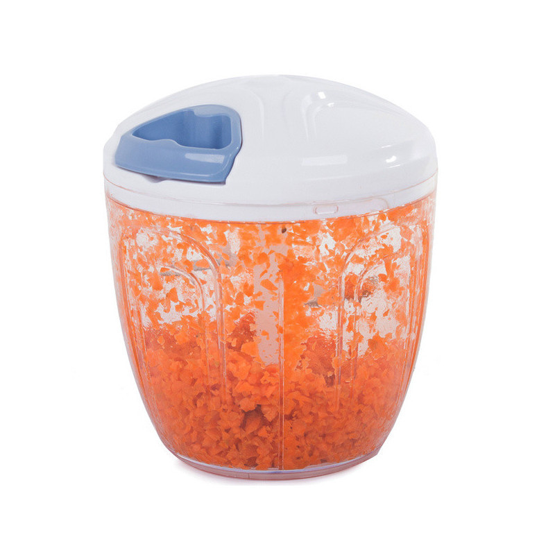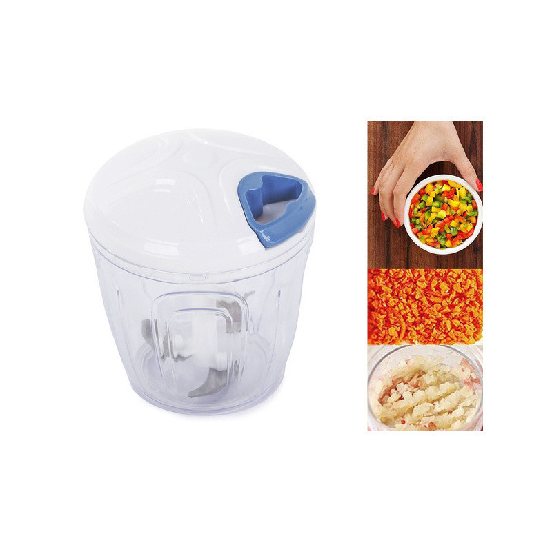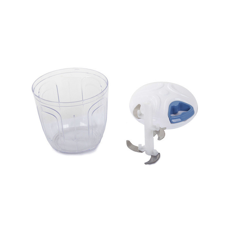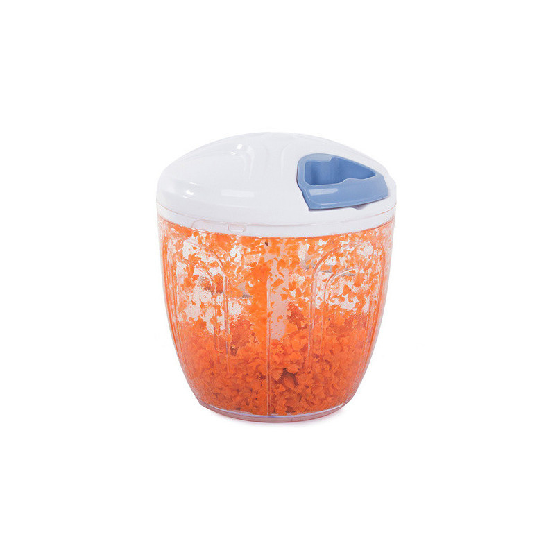 A zöldségaprító egy olyan eszköz, ami nélkülözhetetlen minden konyhában és olyan helyeken, ahol korlátozott a hozzáférésünk egy állandó áramcsatlakozáshoz, például kempingezéskor. Az innovatív, mégis egyszerű hajtómű lehetővé teszi, hogy gyorsan felapríts zöldségeket, gyümölcsöket, dióféléket és fűszernövényeket. A zöldségaprító használata nagyon egyszerű. A zsinórt húzva mozgásba hozod a pengéket, amelyek gyorsan és pontosan aprítják a zöldségeket vagy gyümölcsöket a kedvenc salátáidhoz, szószaidhoz, leveseidhez stb. Az eszköz egy nagy 600ml-es tartállyal és négy rozsdamentes acél pengével van felszerelve.