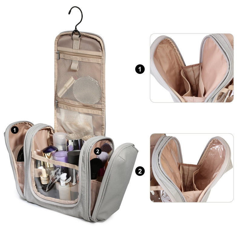 A Felakasztható utazós kozmetikai táska mindegyik célra megfelelő választás. Középen és két oldalt is kicipzározható, így mindent elnyel, amit csak szeretnél.