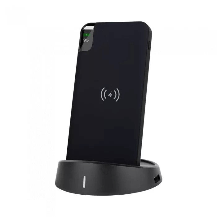 Elegáns dizájnú, lithium polymer, 8000 mAh-s powerbank, amely egy töltőállomást is tartalmaz. A termék bármilyen Qi vezeték nélküli töltésre alkalmas eszközzel kompatibilis. A kütyü túltöltési védelemmel lett ellátva. Bármilyen iOS és Android eszközzel használható.