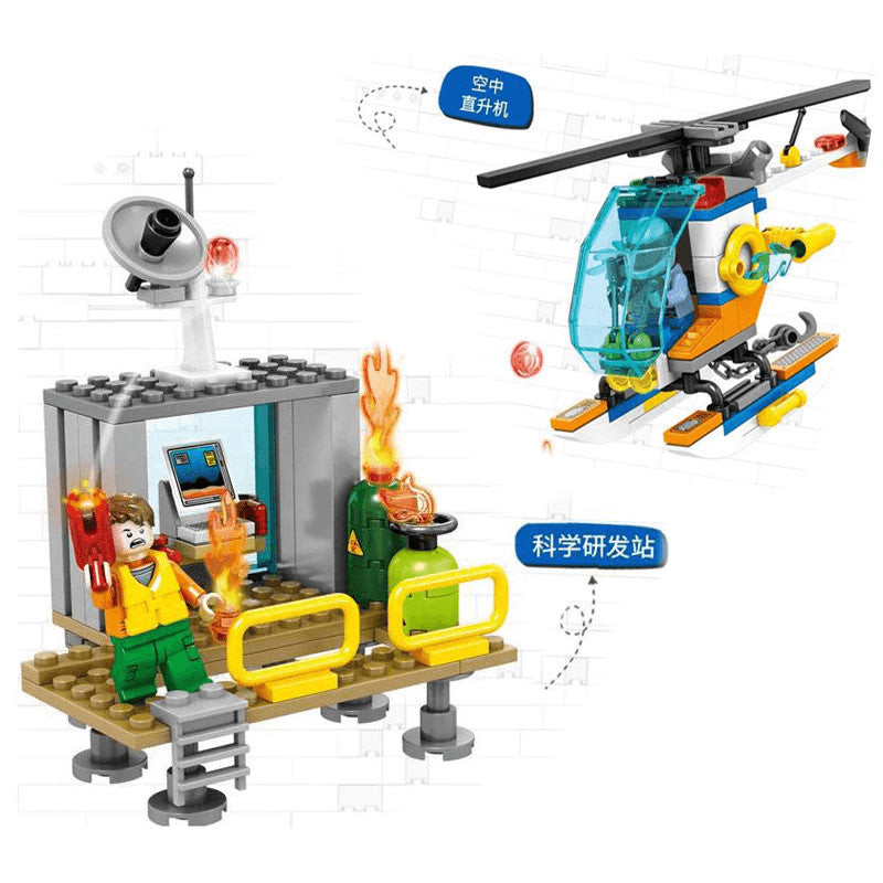 Válaszd akár a rendőr, a helikopter vagy a lánctalpas készletet, segíts az embereken és légy te a város hőse! Építsd meg a helikopter-t, az állomást vagy akár a markolót és már mehet is a mentőakció. Mind a három készlet különböző darabszámú blokkal rendelkezik 116-208 darab között mozogván. Ajánlott életkor 6+ éves kortól a fulladásveszélyes apró darabok miatt. Anyaga strapabíró műanyag, amely nem ártalmas a gyermekre.