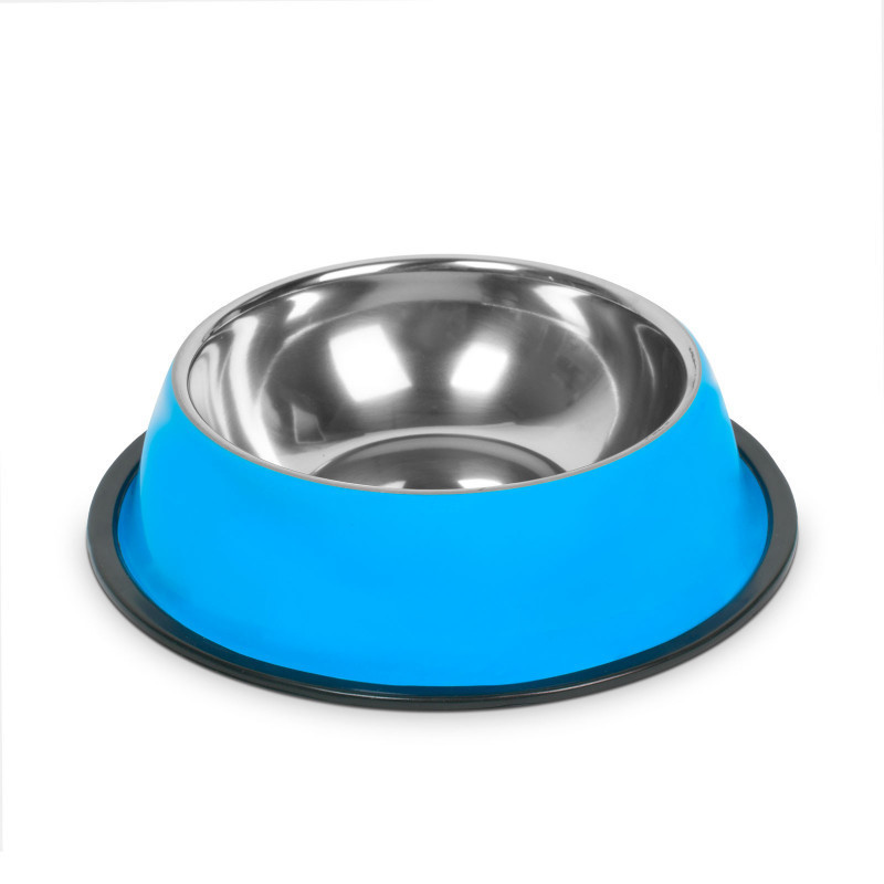Klasszikus kutyatál, amely rozsdamentes acélból készült, kívül színes felületet kapott. Anyaga miatt alkalmas etetőtálnak és itatónak is egyaránt. Könnyen tisztán tartható. A tál alsó részén egy gumi gyűrű fut körbe, amely megakadályozza a tál elcsúszását evés közben. 3 féle méretben kapható, így garantáltan megtalálja a házikendvencéhez leginkább megfelelő méretet.