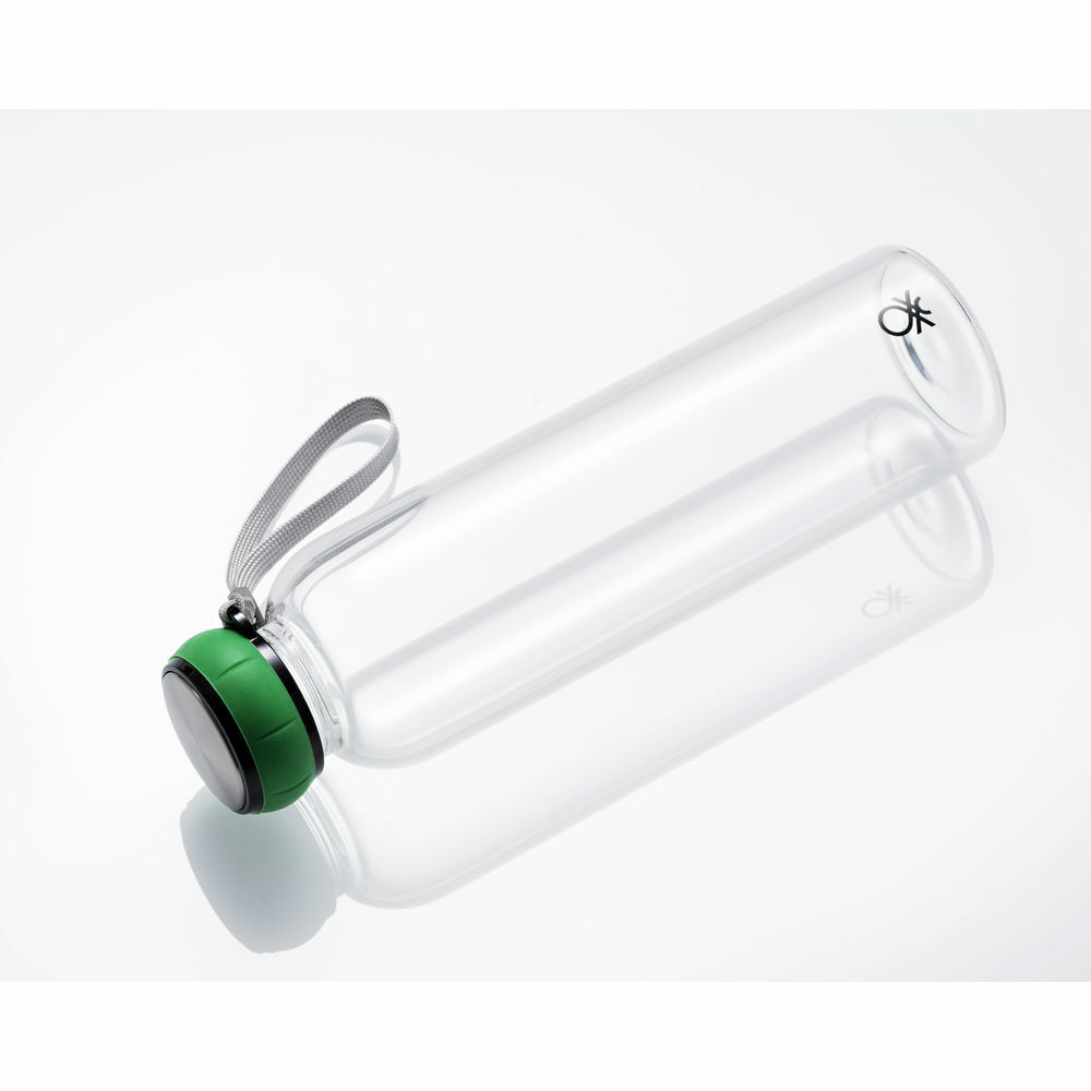 United Colors of Benetton boroszilikát üveg kulacs 550 ml -es űrtartalommal. A műanyag palackokkal ellentétben  nem marad bent a kellemetlen szag és nem hagy foltot a palackban a benne tárolt folyadék. A boroszilikát üvegből készlült palack a hagyományos üveg palackokhoz képest sokkal törésállóbb.