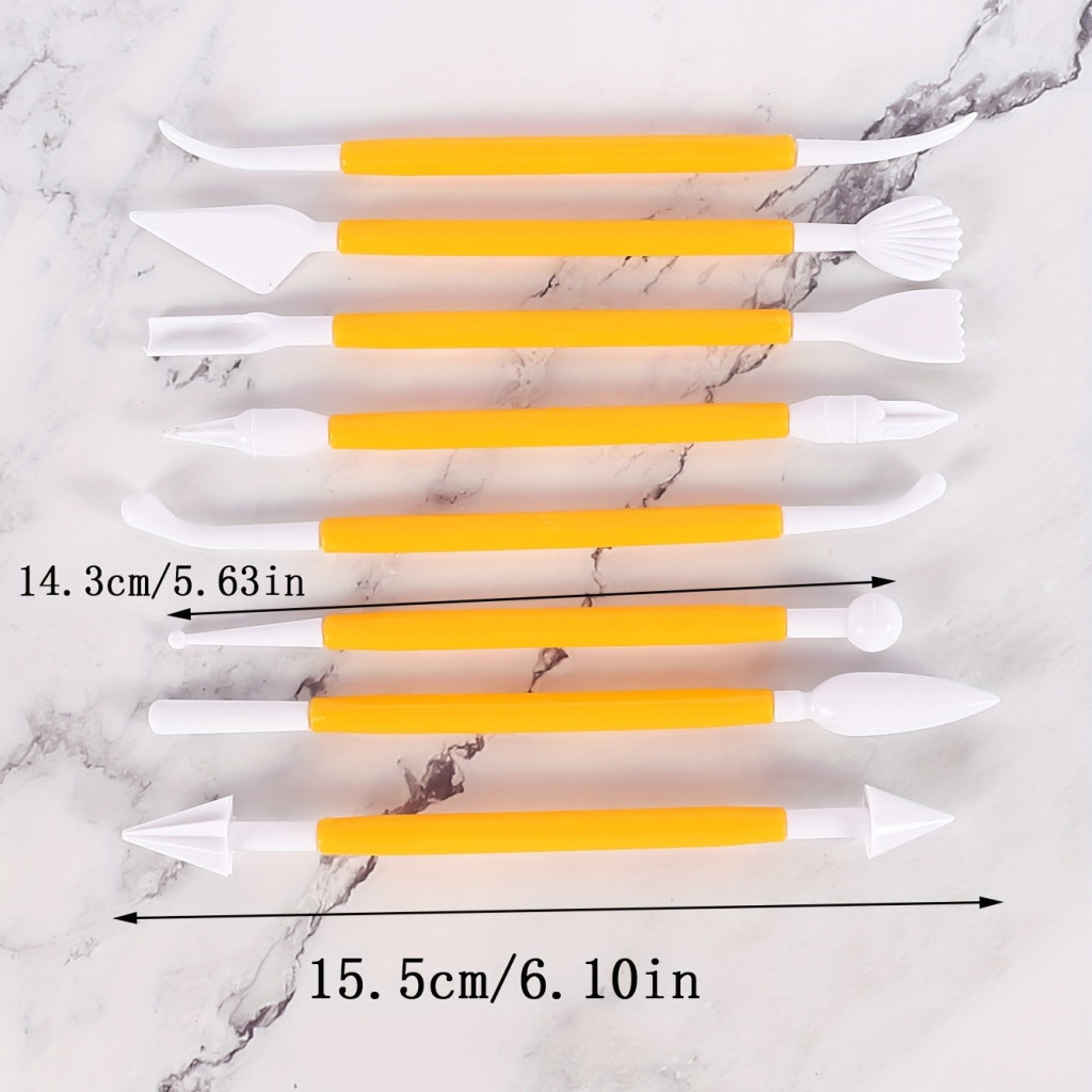 Fedezd fel a tortadíszítés új dimenzióját ezzel a fondant tésztafaragó és vágó készlettel! Ez a 8 darabos eszközkészlet tökéletes választás mindazok számára, akik szeretnék kreatív módon díszíteni süteményeiket. Akár kezdő vagy, akár tapasztalt cukrász, ezek az eszközök segítenek abban, hogy a tortáid valódi műalkotásokká váljanak. A készlet minden szükséges eszközt tartalmaz, amire szükséged lehet a fondant formázásához, vágásához és díszítéséhez. Könnyen kezelhető, ergonomikus kialakításának köszönhetően kényelmesen használható hosszabb időn át is. Engedd szabadjára a fantáziádat, és készíts lenyűgöző tortakölteményeket, amelyek mindenkit ámulatba ejtenek!