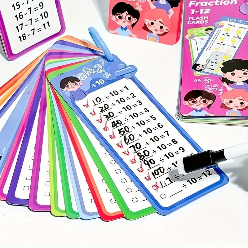 Matematikai Kártya Készlet - Összeadás, Kivonás, Szorzás, Osztás és Tört Önellenőrző Tanulóeszköz